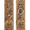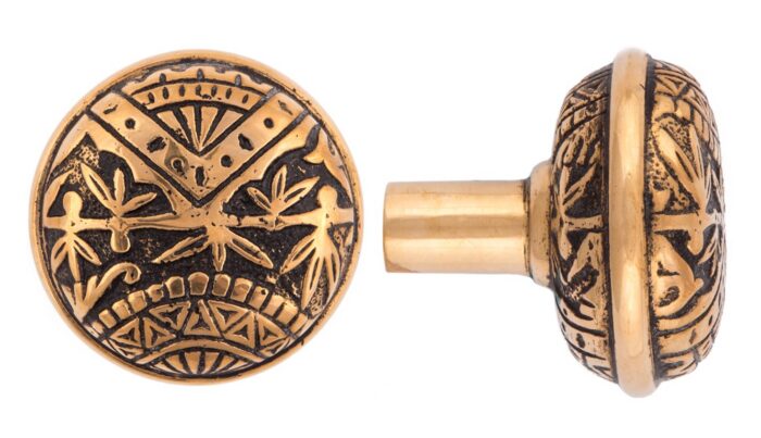 Our Oriental Collection showcases richly detailed depictions of nature and balanced geometric motifs commonly found in Victorian-era decorative hardware. Cast in bronze and finished with traditional Japaning relief, these pieces bring depth, contrast, and dramatic visual interest to any space. Bring fantastical charm to your front door with the Oriental Entry Set, especially when paired with matching hinges and other door accessories.