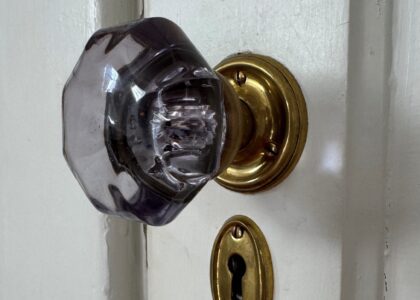- After World War II, The Modern Movement did away with glass doorknobs and switched to less decorative wrought hardware in new finishes of chrome, brushed brass, and steel.