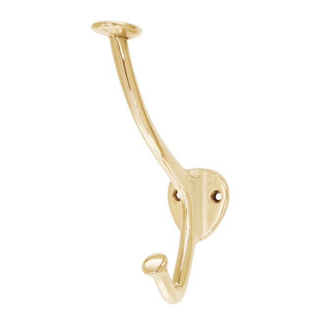 This high reaching Double Brass Hook allows a lot of space to hang a hat and coat together.