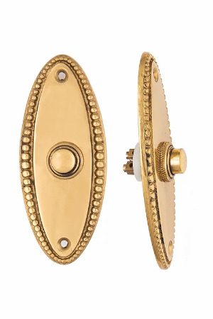 Our Beaded Collection is a refined reproduction of a turn-of-the-century design originally produced by Reading Hardware Company. Cast in solid brass, its delicate ring of evenly spaced beading offers understated elegance well suited to both historic and modern interiors. Designed to complement entry hardware, your doorbell serves as both a practical feature and a finishing detail for your home’s exterior.
