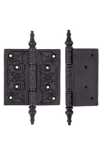 Our Steeple Tip Hinges are a decorative choice for both modern and historic spaces. Design intrigue and flourish are added by the steeple tips. They are cast in iron and have a removeable pin.