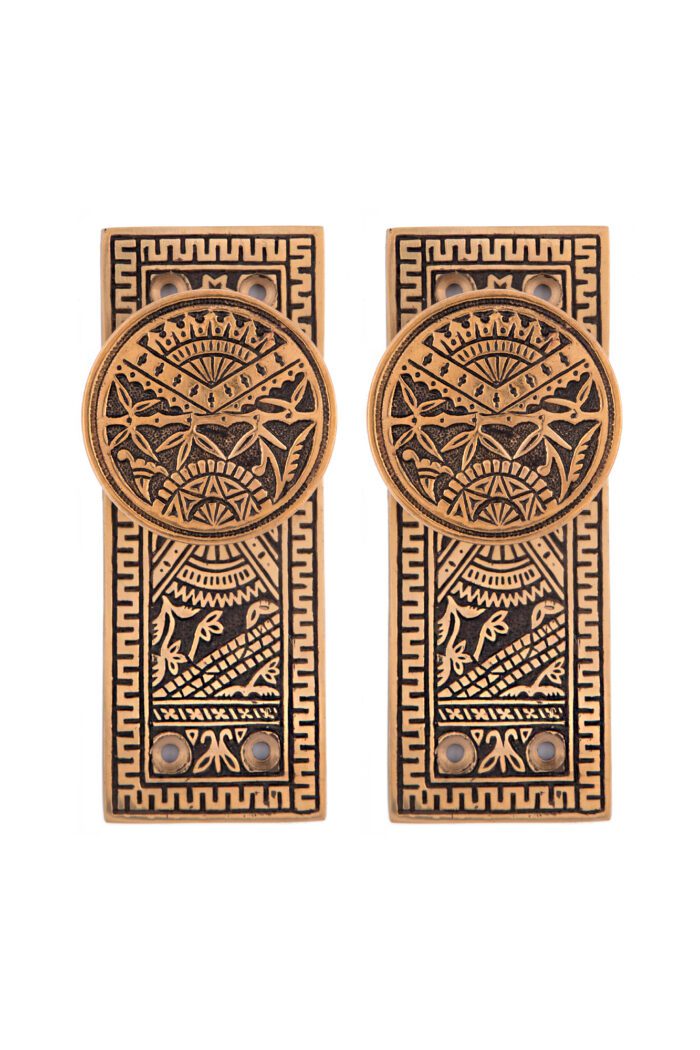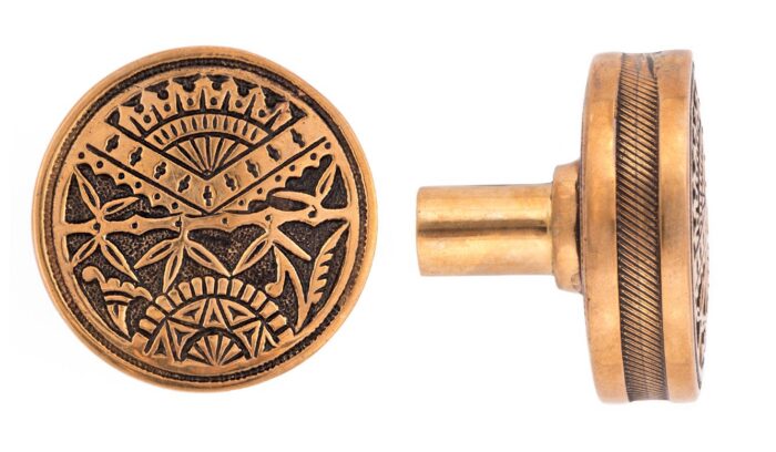 Our Oriental Collection showcases richly detailed depictions of nature and balanced geometric motifs commonly found in Victorian-era decorative hardware. Cast in bronze and finished with traditional Japaning relief, these pieces bring depth, contrast, and dramatic visual interest to any space.