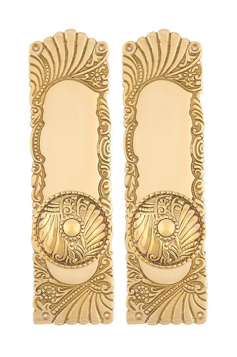 Our Roanoke Collection reflects the flowing lines, organic motifs, and sculptural elegance associated with Art Nouveau design. Rendered in pressed brass, the expressive forms of the Roanoke Entry Set bring movement and refined ornament to your front door.