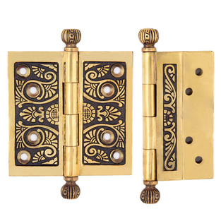 Hinges represent about ½ of the total hardware on a door and are seen when the door is open and closed. In the picture notice the decorative leaves that show when the door is open and the reveal of the hinge that shows when the door is closed. This hinge has a decorative barrel and finial as well as a decorative reveal. Take a look at your hinges and notice how they look with your other hardware.